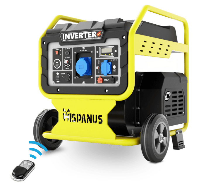 Generador inverter Hispanus, hasta 8000wp de potencia y con entrega en 24/48h, disponible con arranque por Control Remoto hasta 50M.