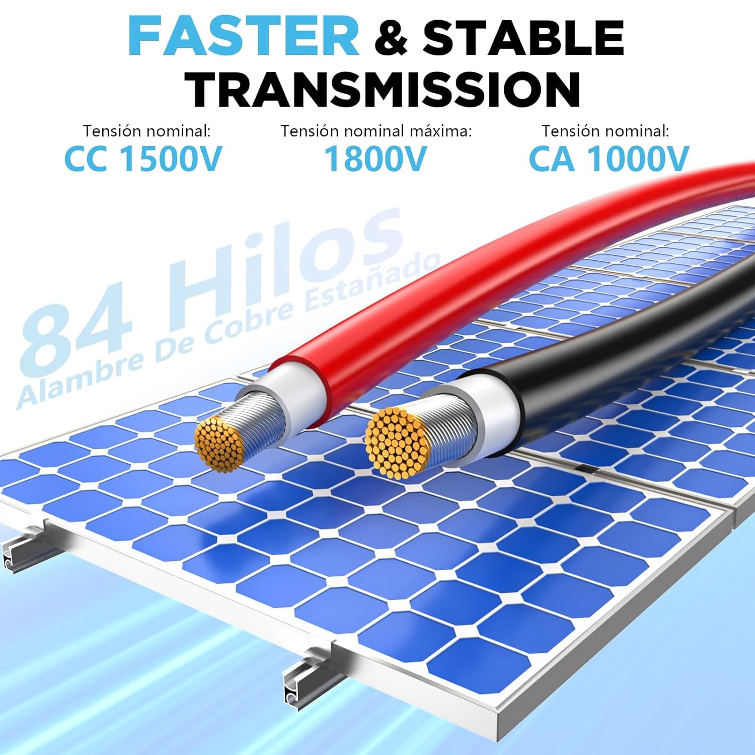 Este cable es apto para sistemas de hasta 1500V DC (con voltaje máximo de 1800V DC), lo que lo hace compatible con la mayoría de los inversores y reguladores del mercado. Tiene una capacidad de corriente nominal de hasta 40A (en sección 6mm²), adaptándose perfectamente a instalaciones exigentes.