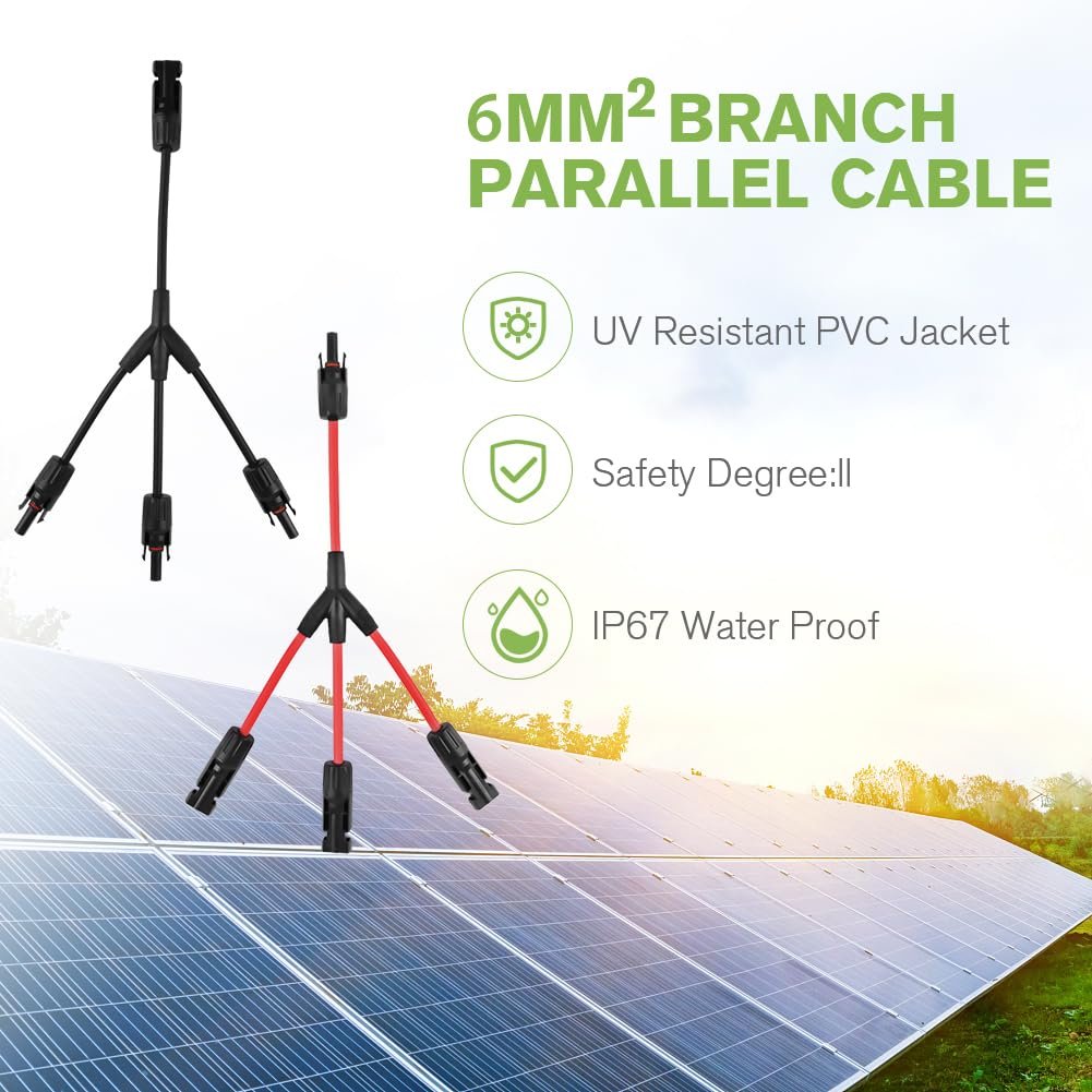 Este conector en Y permite conectar hasta 3 paneles solares en paralelo de forma rápida y segura, optimizando la distribución de la corriente en tu sistema fotovoltaico.